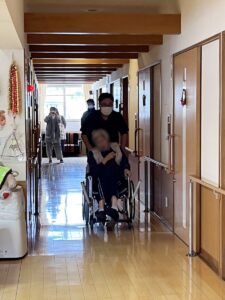 重度化している入居者様もいらっしゃいますので、今回は、寝た切りの方を避難させることが出来るよう訓練を行いました。
